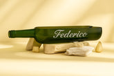A unique tray, handmade from recycled glass bottles and personalized with a name of your choice: a sustainable, elegant, and completely personal gesture.